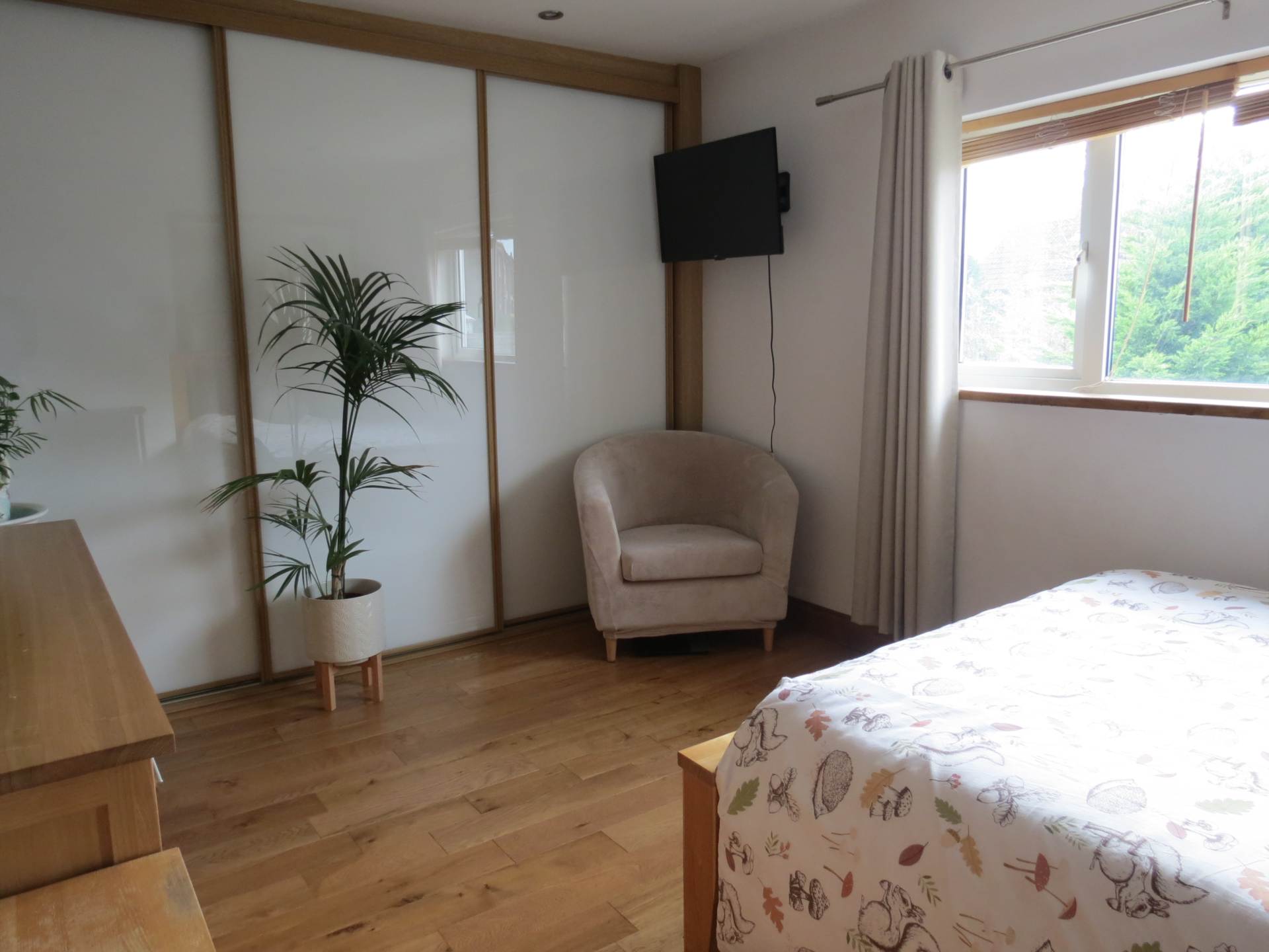 Hardwood floors, cast iron radiator, Fitted wardrobes with re enforced glass, window to rear.
