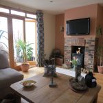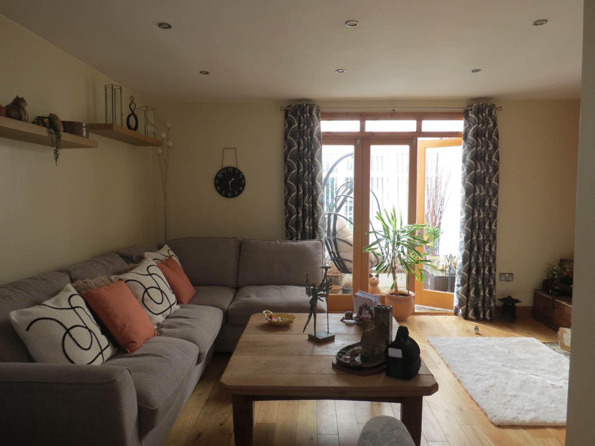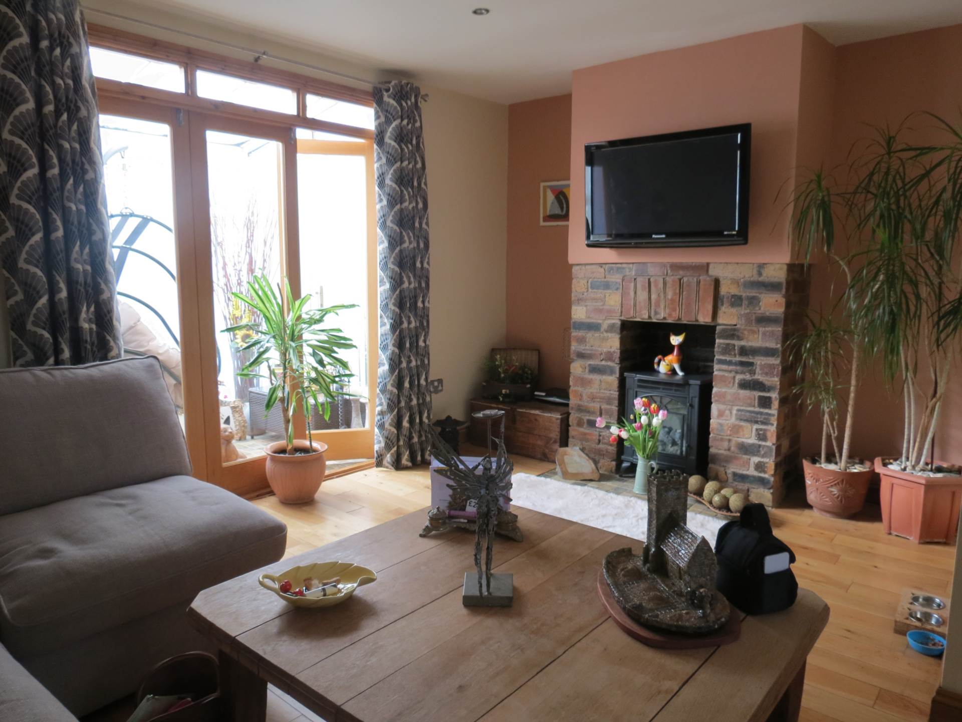 Hard wood floors, electric fire, feature exposed brick chimney breast, window to front bi fold doors to conservatory