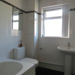 Bath with mixer shoer and glass screen, WC and hand wash basin, heated towel rail.